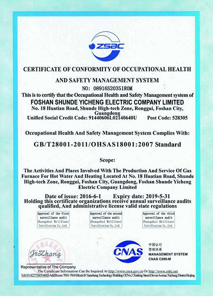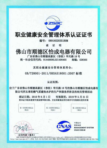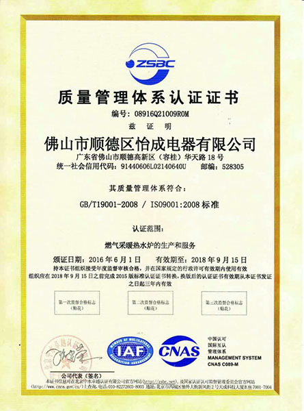 佛山市順德區(qū)怡成電器有限公司屬下有八部一室,三大車間,工程技術(shù)人員和管理人才100多人,一大批現(xiàn)代化五金生產(chǎn)設(shè)備,自動(dòng)噴涂生產(chǎn)線和功能齊全的現(xiàn)代化生產(chǎn)線,公司為做好壁掛爐產(chǎn)品,從一開始就選用高、精、尖的生產(chǎn)設(shè)備和檢測(cè)設(shè)備和自動(dòng)翻版檢測(cè)設(shè)備。連續(xù)配氣系統(tǒng)設(shè)備,NOX綜合測(cè)試裝置,五合一全電腦綜合測(cè)試設(shè)備儀器,測(cè)試的準(zhǔn)確性、可靠性及耐久試驗(yàn)都在同行具有水平。